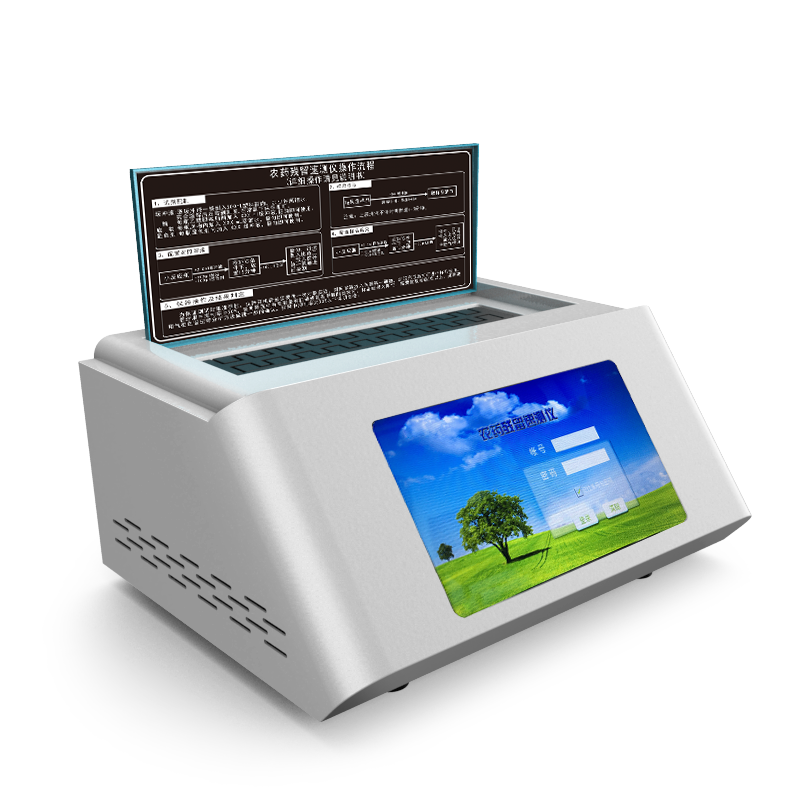 8、檢測模塊具有智能溫控裝置,自動判斷環(huán)境溫度并根據所選農殘卡樣式,自動判定并能顯示最佳溫度,可自動加熱并恒溫,保證反應在最佳穩(wěn)定溫度進行,檢測快速簡單。