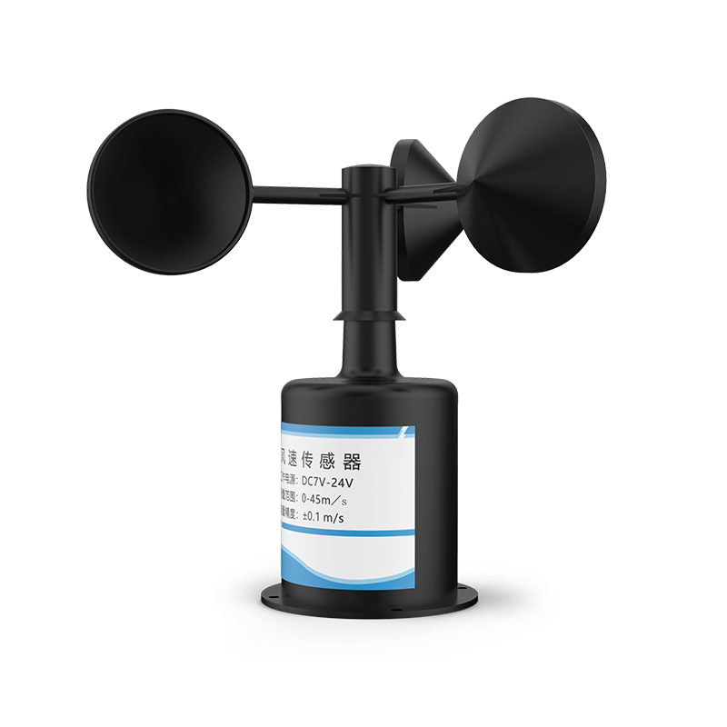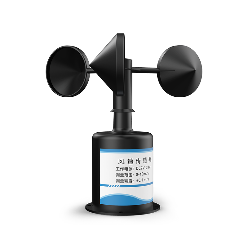 空氣流動產生的風力推動傳感器旋轉,中軸帶動內部感應元件產生脈沖信號,在風速測量范圍內,風速與脈沖頻率成一定的線性關系。利用傳感器在風力作用下的轉速測量風速,具有結構簡單、安裝容易、成本低、精度高等特性。