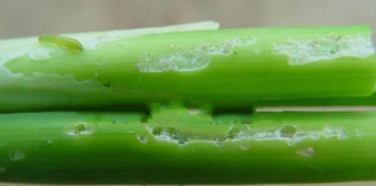 為害特征:幼蟲(chóng)蛀食韭葉,嚴(yán)重時(shí)心葉變黃,降低產(chǎn)量和質(zhì)量,以老韭菜和種株受害最重。
