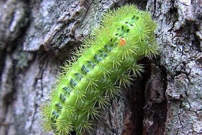 幼蟲一般6?7齡,少數(shù)8?10齡。齡期的多少主要依寄主、季節(jié)及環(huán)境條件而定。第一代幼蟲發(fā)生在4?6月,天氣潮濕,氣候也較溫和,幼蟲大多6?7齡,第二至三代幼蟲多發(fā)生在7?9月,天氣干燥,陽光猛烈,幼蟲大多7?8齡。幼蟲取食以最后兩齡最烈,為害最重。幼蟲蛻皮前多停食1?1.5d,蛻皮后停食數(shù)小時即可取食。