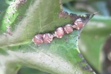 紅蠟蚧(Ceroplastes rubens Maskell)又名大紅蠟蚧、臍狀紅蠟蚧,俗稱蠟子,屬半翅目蠟蚧科。由于雌成蟲體色呈玫瑰紅至紫紅色,故也稱作胭脂蟲、紅虱子。在我國分布西自西藏,東至沿海各地、臺(tái)灣,南自海南、廣東、廣西,北到陜北、山東。在長(zhǎng)江流域以南發(fā)生較多,屢有局部成災(zāi)。海南膠茶間作園亦曾受害較重。除為害茶樹外,還為害柑橘、油茶、龍眼、梨、香樟、芒果、貢山含笑、大葉黃楊、梔子、海棠、玉蘭、蘇鐵、羅漢松、石榴、雪松、桂花等多種植物。以若蟲和雌成蟲固定在枝、葉上吸汁為害,并誘發(fā)煤煙病,致使樹勢(shì)衰退,芽葉稀少,為害嚴(yán)重時(shí)甚至整株枯死。