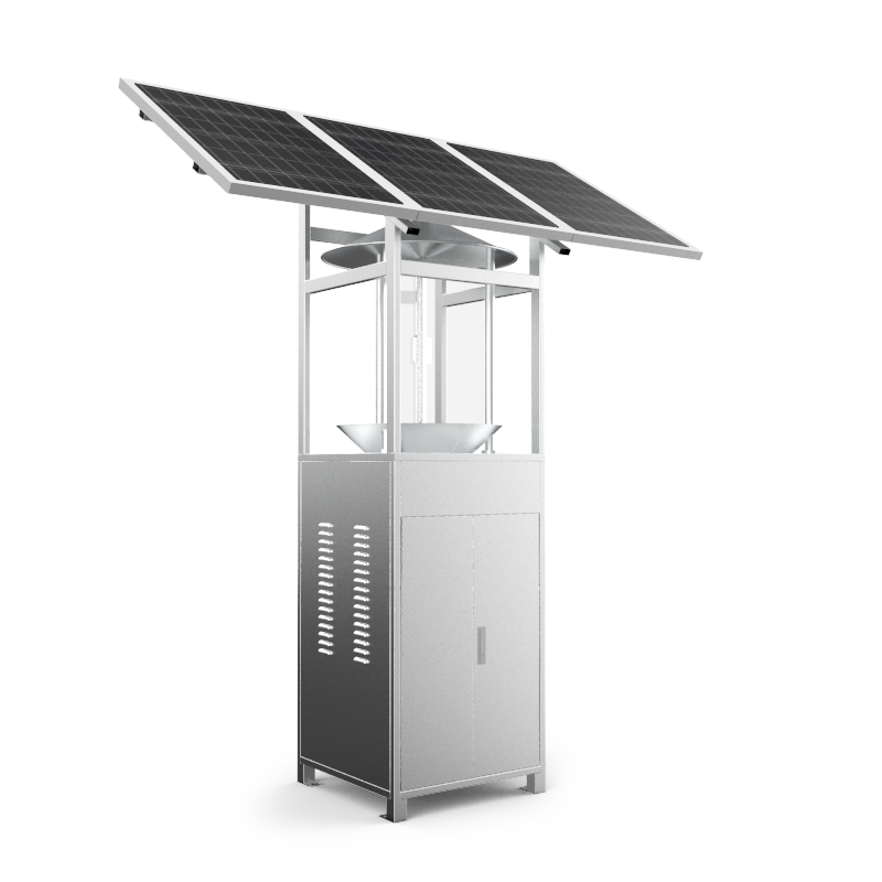 太陽能自動蟲情測報燈專為農(nóng)林蟲情測報而研制,該燈利用現(xiàn)代光、電、數(shù)控技術(shù),實現(xiàn)了蟲體遠紅外自動處理、接蟲瓶自動轉(zhuǎn)換、整燈自動運行等功能。在無人監(jiān)管的情況下,能自動完成誘蟲、殺蟲、收集、分裝、排水等系統(tǒng)作業(yè)??稍鲈O風速風向、環(huán)境溫濕度、光照等多種傳感器接口,并可通過GPRS上傳數(shù)據(jù),以監(jiān)測環(huán)境與病蟲害之間的關(guān)系。廣泛應用于:農(nóng)業(yè)、林業(yè)、牧業(yè)、蔬菜、煙草、茶葉、藥材、園林、果園、城鎮(zhèn)綠化、檢疫等領(lǐng)域。