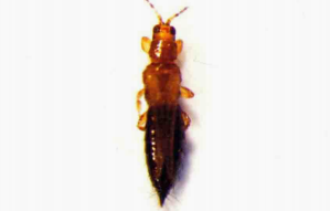 雄成蟲:體較雌蟲略小,體長0.9?1.0mm,體黃色,腹部第三至七節(jié)腹片有橫腺域。