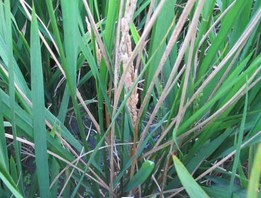 3.栽培管理 傷口有利于病菌侵入,因此,脫粒時(shí)稻種受傷,拔秧或栽插時(shí)秧苗受傷過重,栽插過夜秧及栽插過深,均會(huì)加重發(fā)病。另外,旱育秧比水育秧發(fā)病重。長(zhǎng)期深灌導(dǎo)致水稻生長(zhǎng)衰弱,有利于發(fā)病。收獲后不及時(shí)脫粒,堆放時(shí)間越長(zhǎng),稻種污染病菌的機(jī)會(huì)越大。偏施氮肥有利于病害發(fā)生。