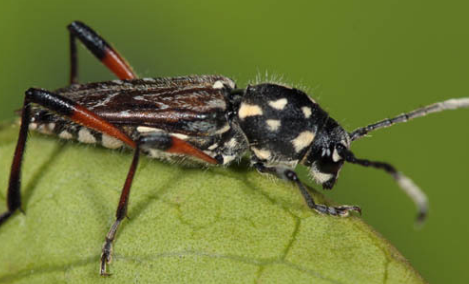 脊胸天牛(Rhytidodera bowringii White)屬鞘翅目天???。在我國和緬甸、印度尼西亞、印度腰果植區(qū)發(fā)生,是我國重要的腰果害蟲。除為害腰果外,還為害芒果、人面子等。脊胸天牛幼蟲蛀害腰果枝干,造成枝干枯死或折斷,使腰果植株長勢減弱,嚴(yán)重時可導(dǎo)致植株死亡。